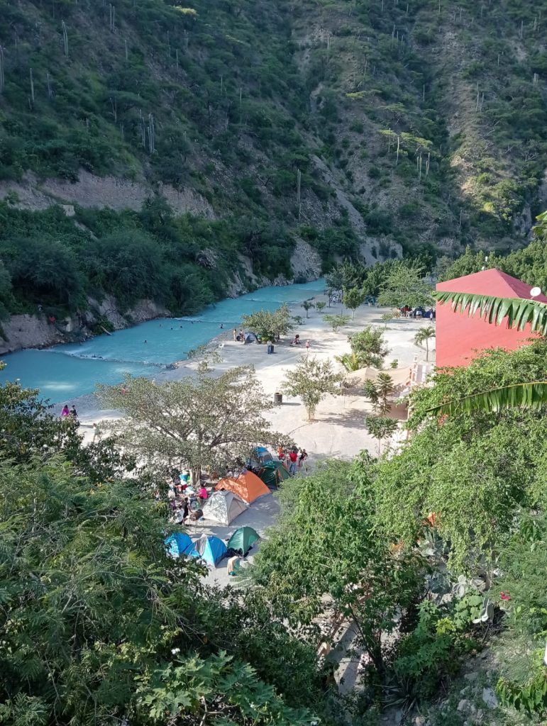 El sábado por la mañana, la recompensa fue absoluta. Al llegar, nos recibió ese espectáculo de aguas termales color cielo que solo Tolantongo puede ofrecer. Los viajeros disfrutaron de un delicioso desayuno local antes de lanzarse a explorar cada rincón: desde la misteriosa gruta y el relajante túnel hasta la adrenalina del puente colgante y la serenidad de las pozas escalonadas.